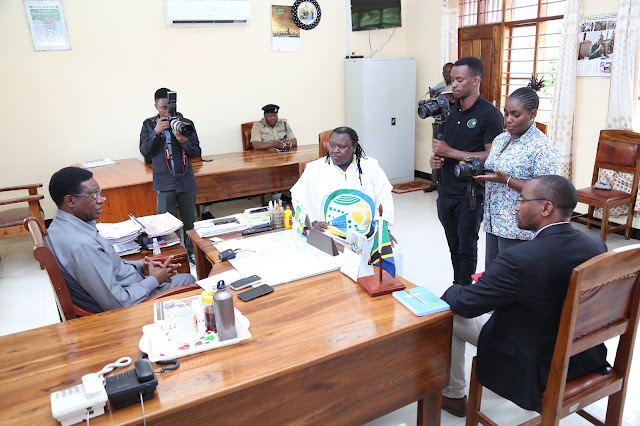 Msanii Mrisho Mpoto (Mjomba) kutoka Mjomba Theatre Gallery akifafanua jambo mbele ya mkuu wa Mkoa wa Songwe Breg. Jen. Nicodemus Mwengela (hayupo kwenye picha).