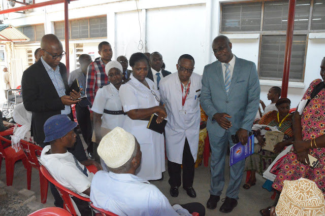 Naibu Waziri wa Afya, Maendeleo ya Jamii, Jinsia, Wazee na Watoto Dkt. Faustine Ndugulile (wa kwanza kushoto) akikagua vyumba vya wagonjwa katika Hospitali Maalum ya Magonjwa Ambukizi Kibong’oto.