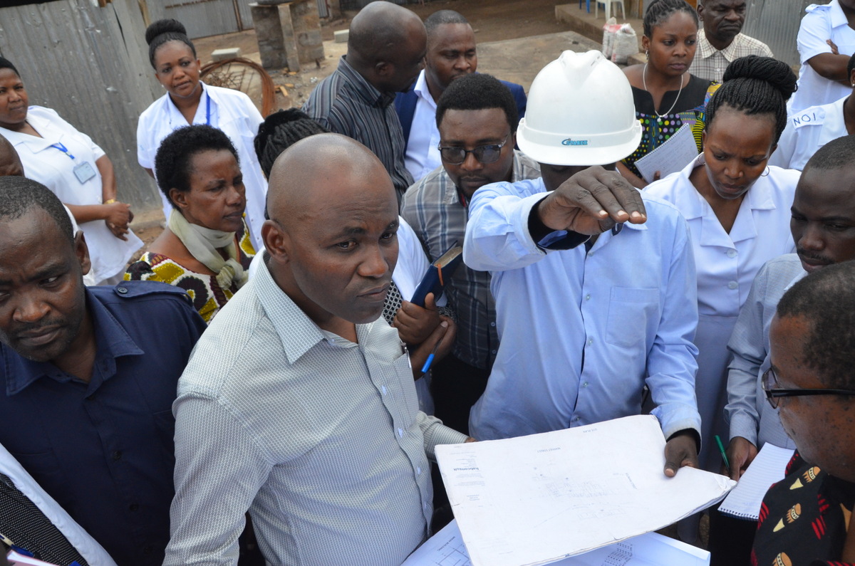 Naibu Waziri wa Afya, Maendeleo ya Jamii, Jinsia, Wazee na Watoto Dkt. Faustine Ndugulile akikagua ramani ya jengo la maabara litakalojengwa katika Hospitali Maalum ya Magonjwa Ambukizi Kibong’oto.