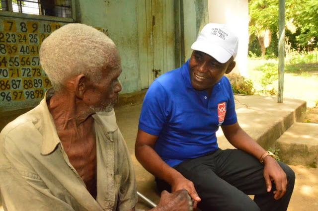 Faustine Ndugulile (kulia)akisalimiana na Mzee Anthony Martin (kushoto)